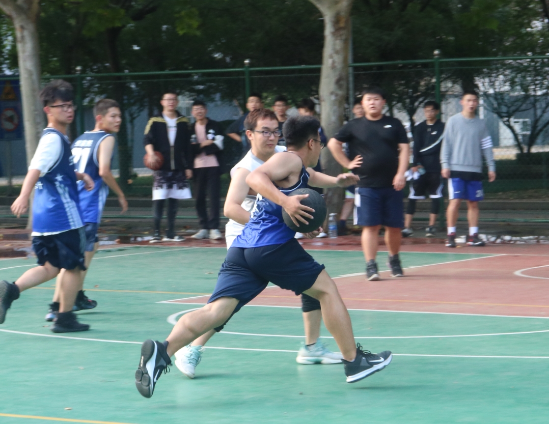 此次比赛分两场进行。第一场为2021级代表队对战2018级和2019级联合代表队,第二场为2020级代表队对战研究生代表队。赛场上队员们积极投入,顽强拼搏,全力以赴,以矫健熟练的动作运球、传球、防守、投篮。同学们热情高涨,一同为努力拼搏的队员们呐喊助威。最终,比赛在裁判员公正且严肃的监督下进入尾声,2018级和2019级联合代表队以48:33的成绩战胜2021级代表队,2020级代表队以52:26的成绩战胜研究生代表队。