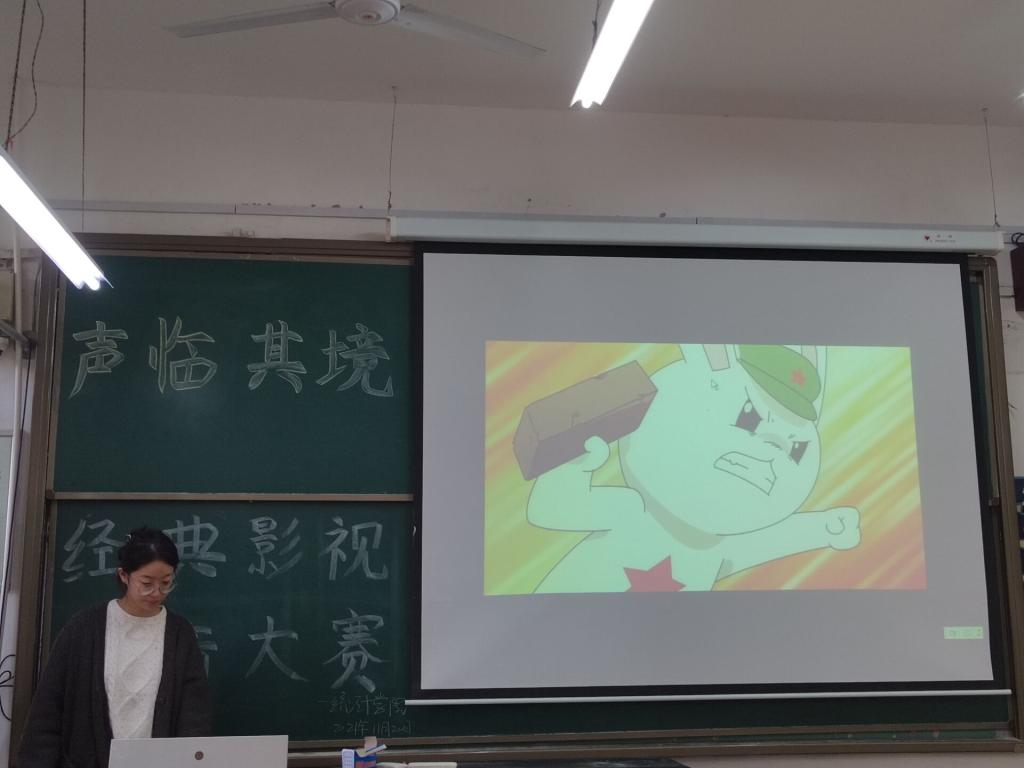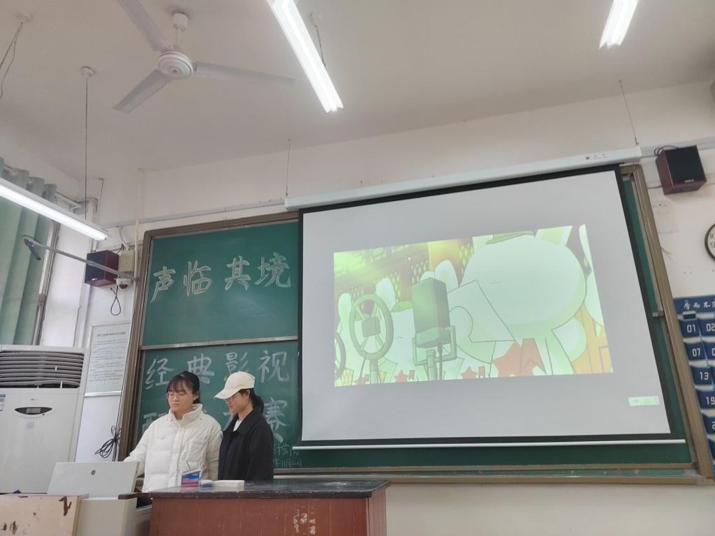 楼101教室举办“声临其境“经典影视配音比赛。本次比赛由勤工助学部常凤环、张若琦担任主持。