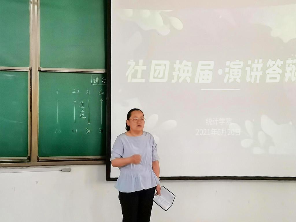 本次竞选按照瑜乐圈、家教协会、统计学社、劳动节俭社的顺序开展,参与换届竞选的武靖宇、孙辉、陈心雨和胡波昊同学依次上台进行演讲和答辩。每位竞选者的演讲和答辩都各具特色、充满信心,充分表述了自身的竞争优势。面对社团指导老师的问题也丝毫不紧张,对答如流。经过四名竞选者的演讲及答辩,由全体与会成员共同投票选举。最后,由李宴美老师宣布社团换届结果,各学社前任社长对自己的工作进行总结报告,为新任社长提供工作经验以及工作要求。会议最后,团委书记李宴美发表讲话。她对上任社团干部的辛勤付出和出色的工作成绩表示肯定并向新任社团干部的任职表示热烈祝贺。接着,她对过去一年里,各社团取得的优秀成果进行了总结的同时,也对亚洲杯直播