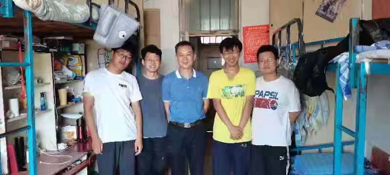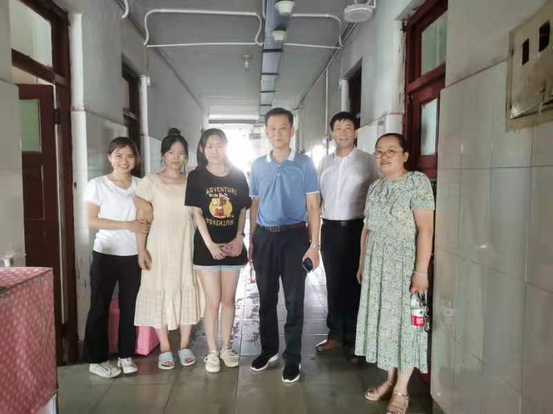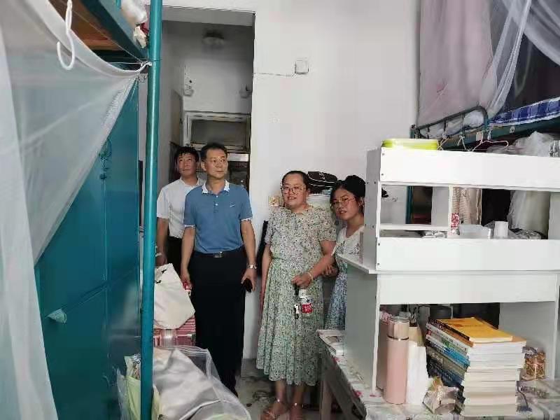 党委书记刘明海、党委副书记季中和团委书记李宴美走进2017级毕业生宿舍进行走访,亲切看望即将离开的毕业生,为毕业生们送行。