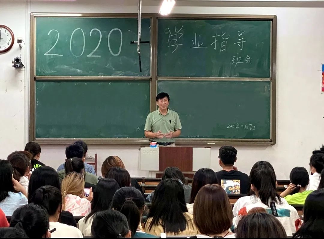 于9月7日晚在西联教室召开2020级学业指导班会,党委副书记季中以及2020级辅导员张庆伟出席了本次会议,2020级全体学生参加了本次会议。