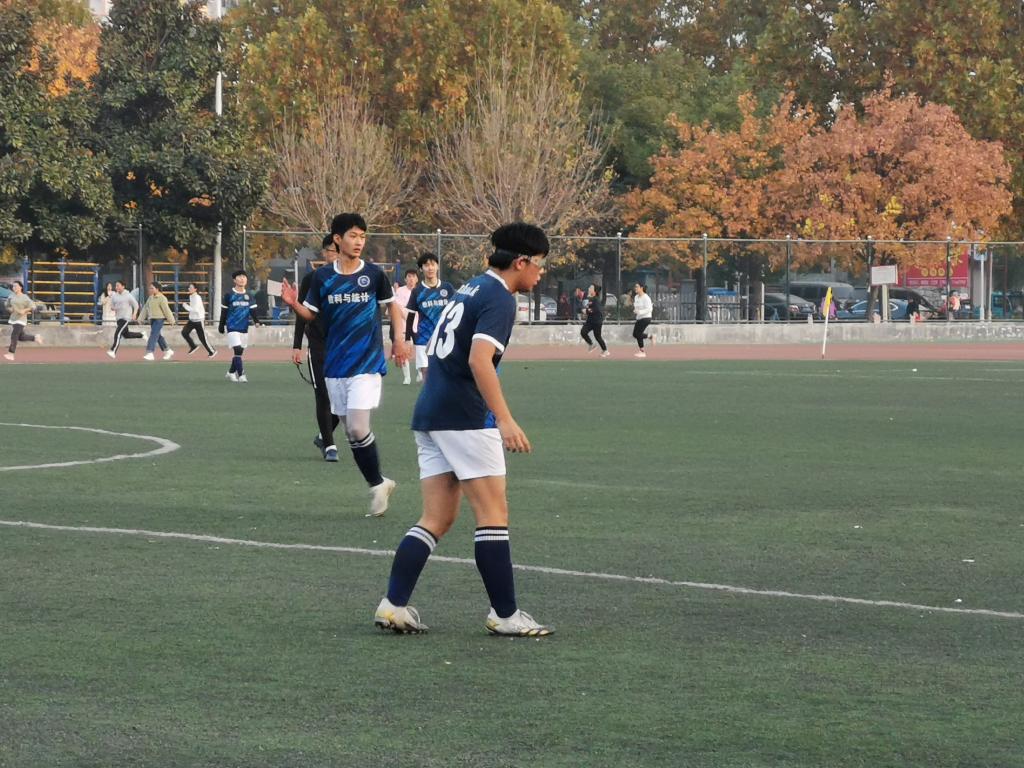 的球员们状态良好,优先进了一分球,赛场的局势瞬间活跃了起来,数统队员们不甘示弱,进行了积极的反击,连进三球。队员们拼尽全力,奔跑如离弦之箭,喊声振奋人心,整场比赛中,双方观战同学热情高涨,球场上不时掌声雷动,最终数统足球队以5:2的好成绩赢得了本次足球比赛的胜利。