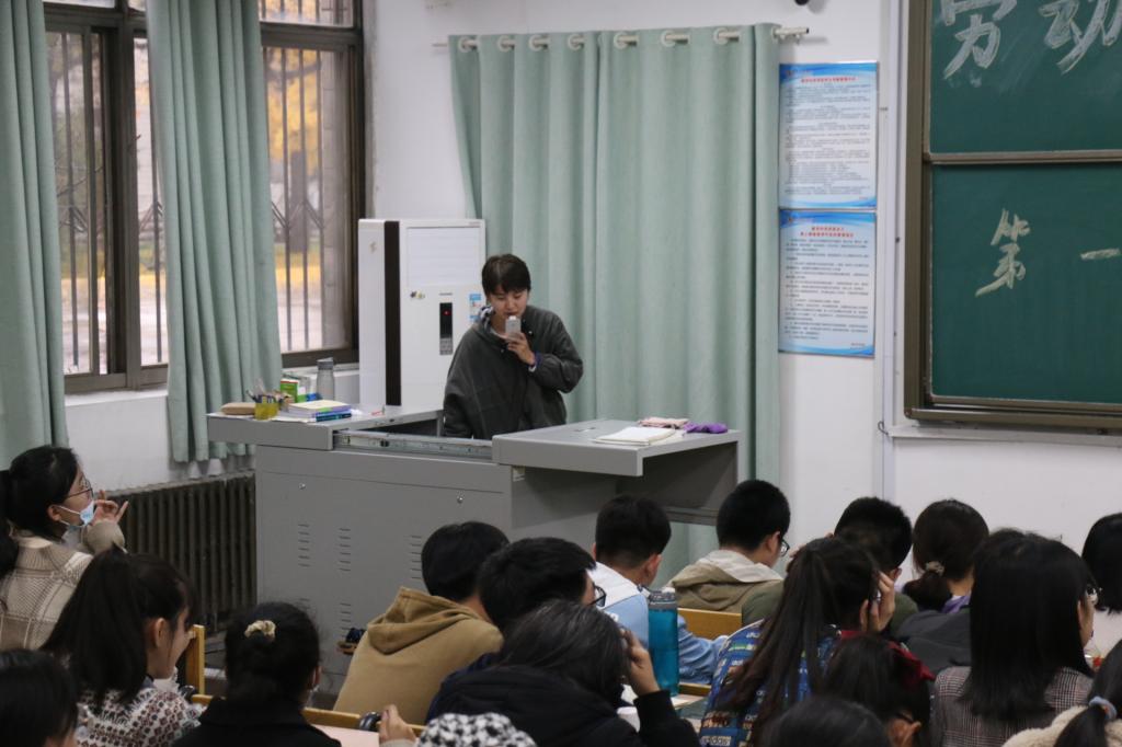 必不可少的重要课程,让同学们端正劳动态度,积极参与劳动。季中老师说明劳动课是由理论,日常生活劳动,生产劳动和志愿服务组成,而其中的日常劳动占比最高并强调宿舍内务在大学期间的劳动中有着重要地位,“一屋不扫何以扫天下“,宿舍卫生的维护不仅是对自己的负责更是对他人的尊重。季中老师还提出,劳动课尤其是宿舍劳动,虽然简单,但却是可以让同学们终生受益。针对于大一新生,季中老师提出要让学生们接受从高中到大学的转变,不仅要重视学习,也要抓好生活。还对于前段时间征求的问题和建议提出了自己的观点并强调了晚自习的重要性。之后,季中老师提出让同学们合理管理时间,有选择性地参加活动,保证学习和工作的兼顾,并强调了规范性请假的必要性,同时,让同学们在面对学习压力,生活困难等问题时可以积极与辅导员张庆伟老师沟通。最后,由刘晓宇同学讲述了有关于党建工作的流程和要求。