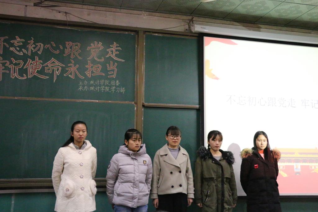 经过充分的赛前准备和主持人的精彩开场白后,比赛正式开始。此次比赛分为两部分,第一部分是参赛选手们围绕“不忘初心跟党走,牢记使命勇担当”的主题进行脱稿演讲,第二部分是参赛选手们根据第一轮演讲结束时随机抽取的主题进行即兴演讲。第一轮时参赛选手们将党的十九大精神和我们的生活密切连接起来,用抑扬顿挫、慷慨激昂的语言为我们阐述了不忘初心跟党走,牢记使命勇担当的主题思想,体现了新一代大学生具有的青春朝气与活力。第二轮时选手们都能比较不错的临场发挥,将自己选到的主题进行扩充演讲。最后由三位评委根据两轮的综合表现为选手们打分。统计二班张欣拔得头筹,取得第一名的优秀成绩。