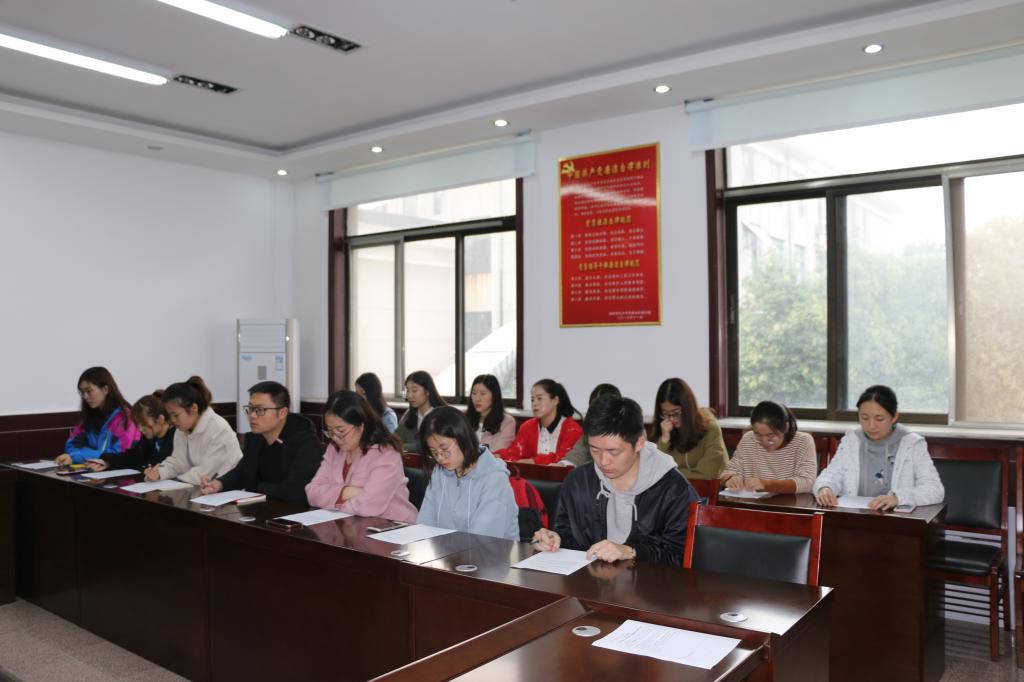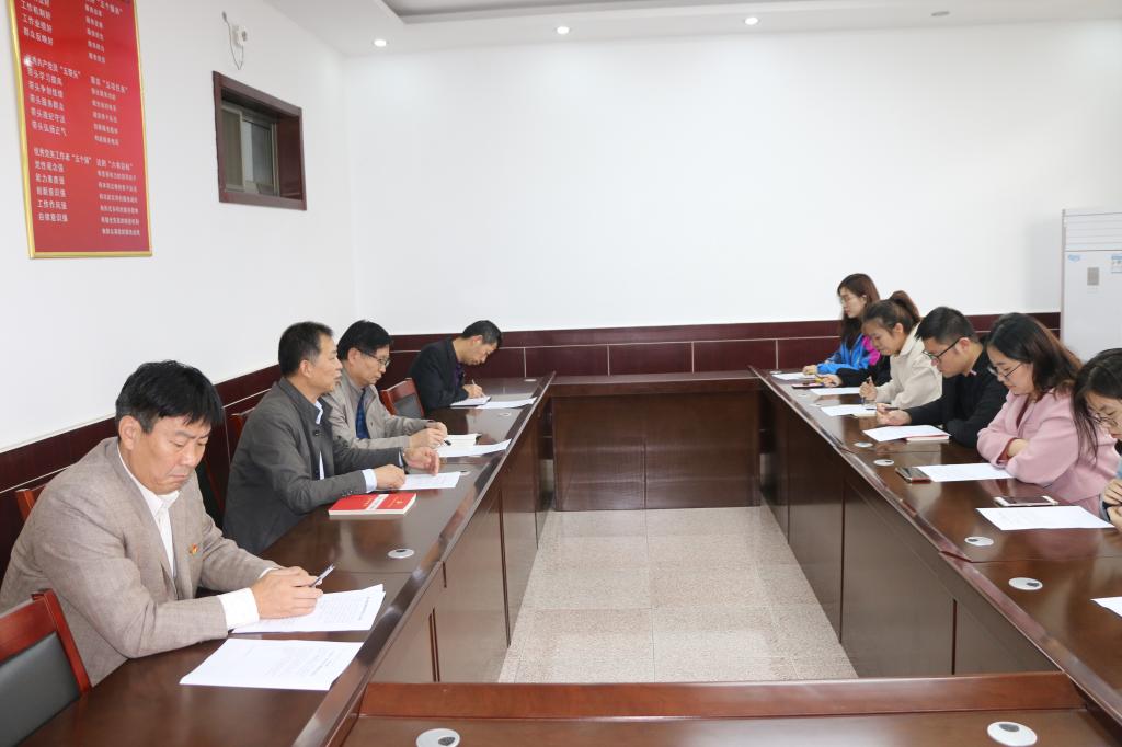 党委书记刘明海,院长尹传存,党委副书记季中,副院长赵胜利,办公室陈晓婷老师,以及部分研究生和本科生代表。