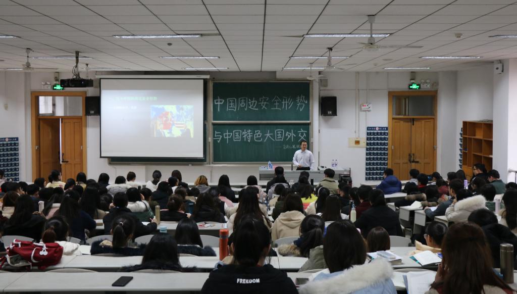 本次课程以“中国周边安全形势与中国特色大国外交”为主题,共包含五大内容。一、当今中国周边的安全形势,政治、经济、文化、军事四方面中国与美国的差异与联系;二、中美关系。包括中美贸易摩擦和美国全球新战略;三、朝鲜半岛核问题;四、中国军队国防现代化建设。孔老师从海、陆、空三军出发讲述了我国现代化建设所取得的成就。五、中国特色大国外交与推动构建人类命运共同体,主要包括构建人类命运共同体思想提出的时代背景、人类命运共同体的基本特征和基本要求、为推动构建共同体贡献中国力量等方面。最后,孔老师对学员们寄予期望,并指出,我们生活的时代是一个最好的、智慧的、信任的、光明的新时代!