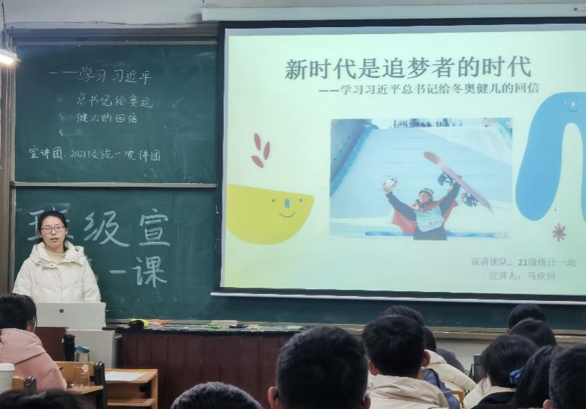 2021级学生于3月6日开展了“学习习近平总书记给奥运健儿的回信”主题宣讲活动。