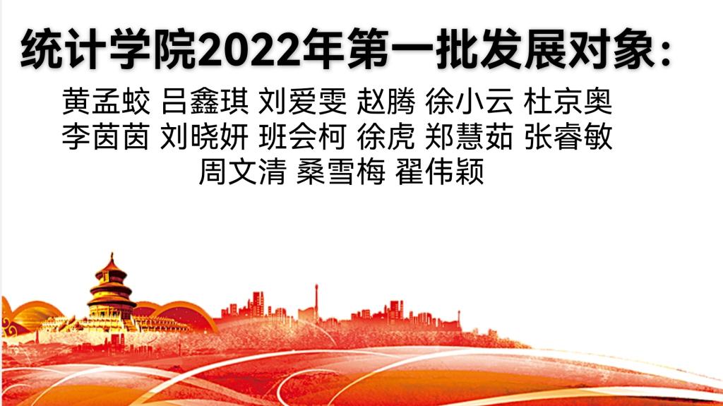2022年第一批发展对象共有15人,分别为黄孟蛟、吕鑫琪、刘爱雯、赵腾、徐小云、杜京奥、李茵茵、刘晓妍、班会柯、徐虎、郑慧茹、张睿敏、周文清、桑雪梅、翟伟颖。这15位同学在学习中锐意进取,在生活和工作中态度端正,为学生起到了模范带头作用,作出了良好的表率。相信他们会在亚洲杯直播