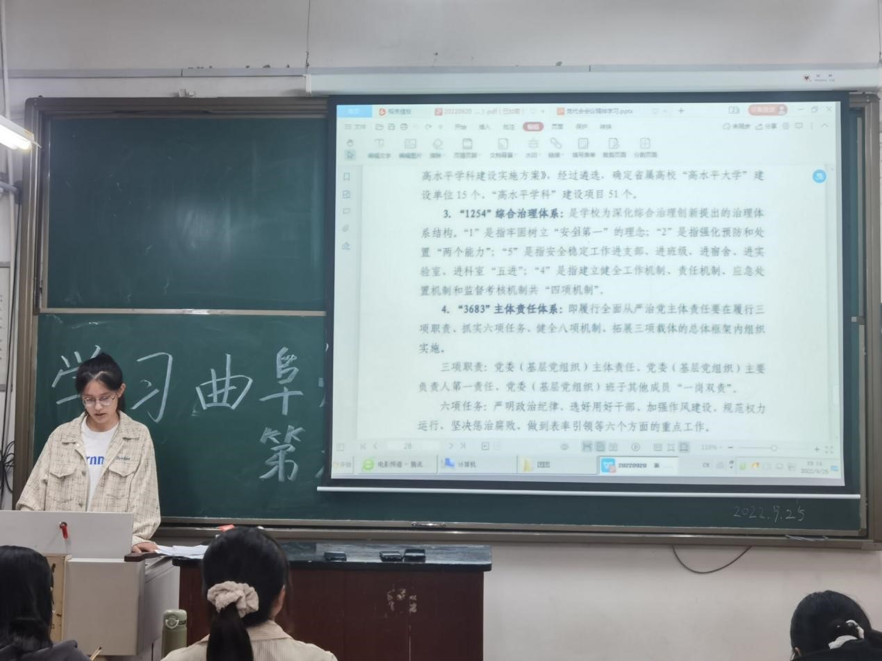 第九次代表大会精神学习”主题团课,各班团支书担任此次团课的主讲人,2021级全体同学参与了此次团课。