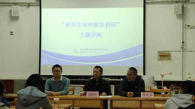 院长赵胜利、应用统计系主任陈晓林以及2022级全体研究生,讲座由研究生辅导员孙涛主持。