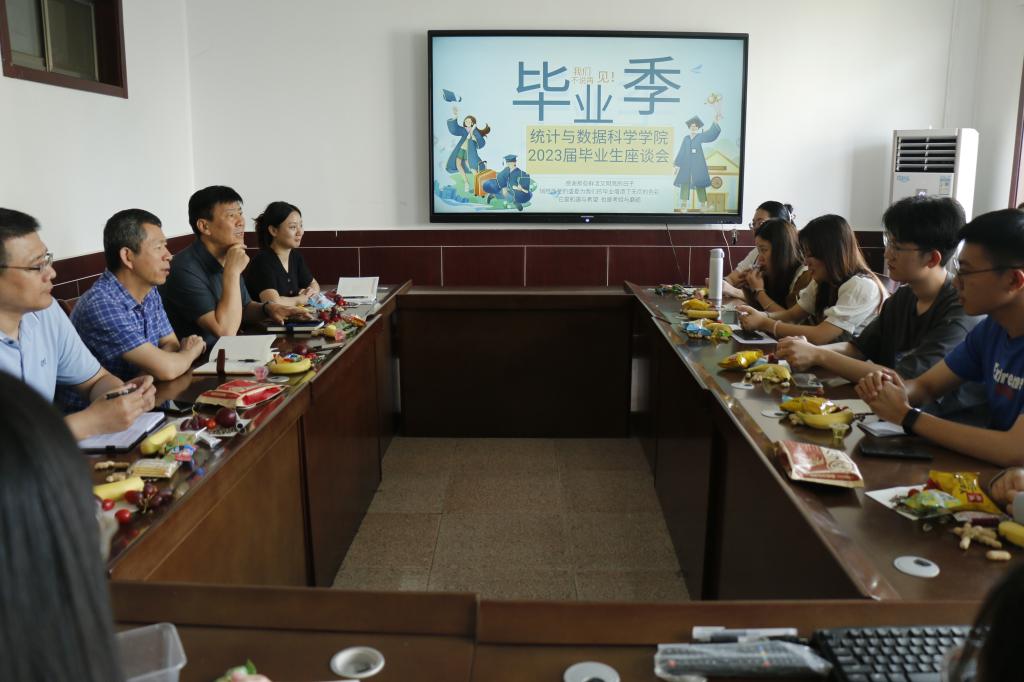 213会议室举办2023届毕业生座谈会,院长赵胜利、党委副书记季中、副院长赵翔华、团委书记李宴美、毕业班辅导员李祥敏、2022级辅导员王旭以及2023届毕业生代表参加座谈会。
