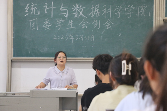 于8月31日下午4:30在综合楼105召开新学期团委学生会例会。本次会议由团委书记李宴美主持,2023级辅导员李祥敏老师、学生会主席团成员和各部门部长参加会议。
