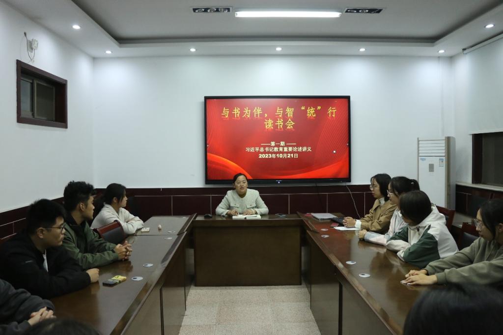 213会议室举行“与书为伴,与智‘统’行”学习读书会成立仪式。团委书记李宴美出席本次活动,团委副书记娄力钧主持,二十名团支书和优秀学生代表参加。