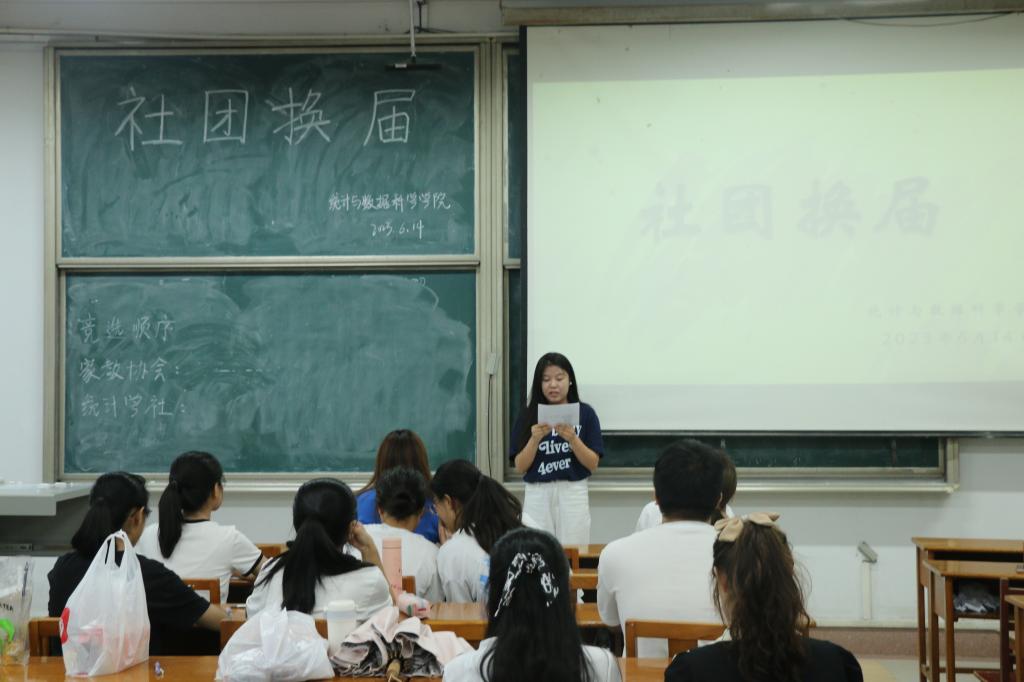 会议伊始,各社团前社长回顾了上一年的工作情况,为新任社长提供了工作经验和工作建议,同时希望其能够做好社团的服务工作,为社团发展提供更好的活动平台。接着,社团成员积极参与职位竞选,通过发言以及答辩讲解了自身的竞选优势,由全体参会成员共同投票选举出各社团新任社长及职务人员:苏苗凤成功竞选家教协会社长兼团支书、孙如惠成功竞选统计学社社长兼团支书、郑小菲和王露分别成功竞选家教协会和统计学社组织委员、师旗和石紫纯成功竞选家教协会和统计学社宣传委员。会议最后,李宴美老师指出了社团现存的一些问题并给出相应指导建议。