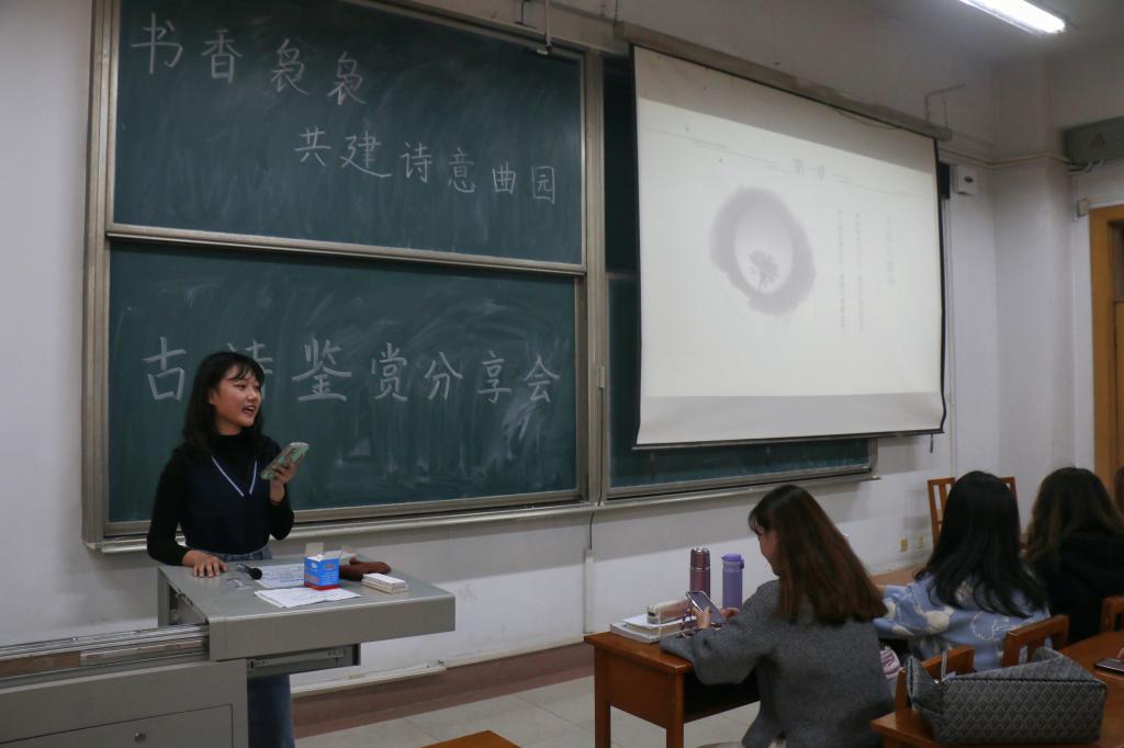 于11月4日下午2:30在综合楼203开展“以诗会友,以词传情”诗词鉴赏大会,各年级学生代表参加本次活动。
