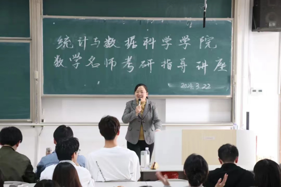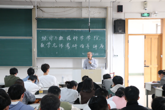 会上,孙钦福老师围绕统计专业进行讲解,介绍了研究生招生的整体形势,考研分数走向,研究生院校的选择等。孙老师结合多年研究生招生工作经历,以生动具体的案例,从考前的资料准备、亮点展示,到复试阶段的专业测试、英语测试、综合能力测试等考察要点为同学们做了详细的讲解,勉励同学们要全面了解考研,保持积极的心态,全力以赴做好考研准备。