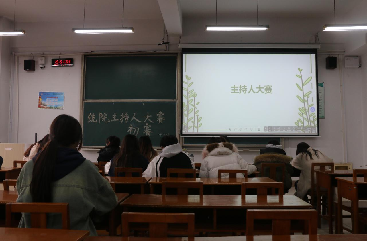 于2024年3月27日在综合楼303举办“主诗韵青春,持飞扬人生”主题校园主持人大赛初赛,统计学子们积极参与本次活动。