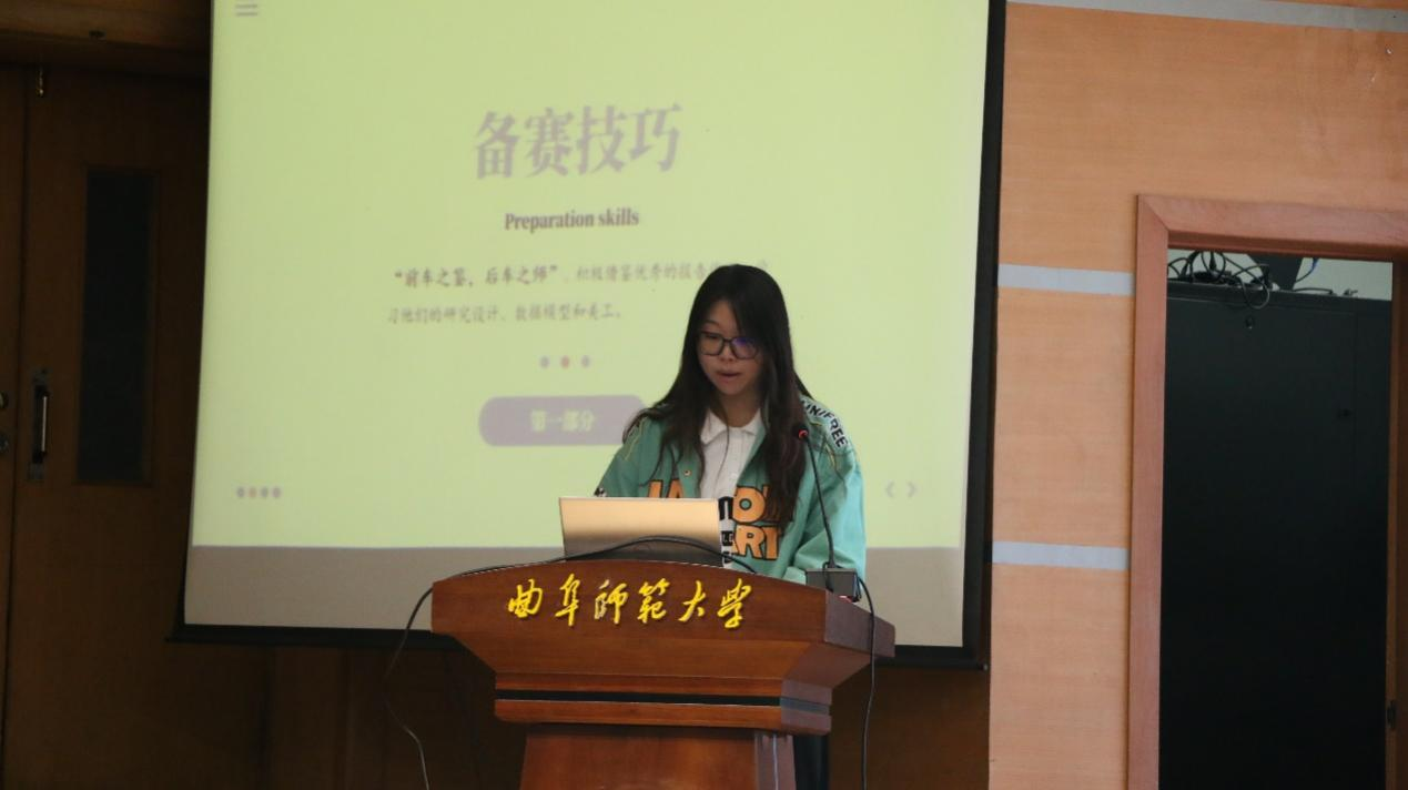 会议伊始,安佳向同学们介绍了市场调查与分析大赛的比赛时间、流程及作品的提交方式,使同学们能够全面了解比赛的基本流程。随后,国赛获奖同学上台分享比赛经验。李文静讲解了备赛技巧,包括有效的团队协作方法、选题确定、报告撰写,以及独特的答辩技巧,并在最后进行了经验总结。陈添硕则将整体内容分为组队、选题、问卷与抽样、数据、撰写、修改与答辩六个模块。他针对每个模块都给予了详细的解说和指导,并在强调了比赛的关键与注意事项后指出:最重要的是享受比赛。