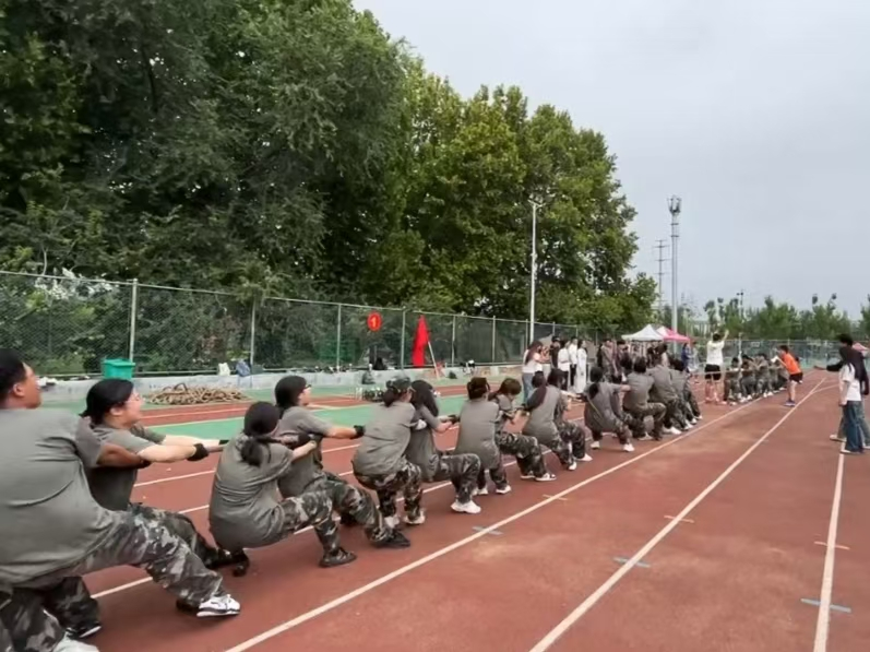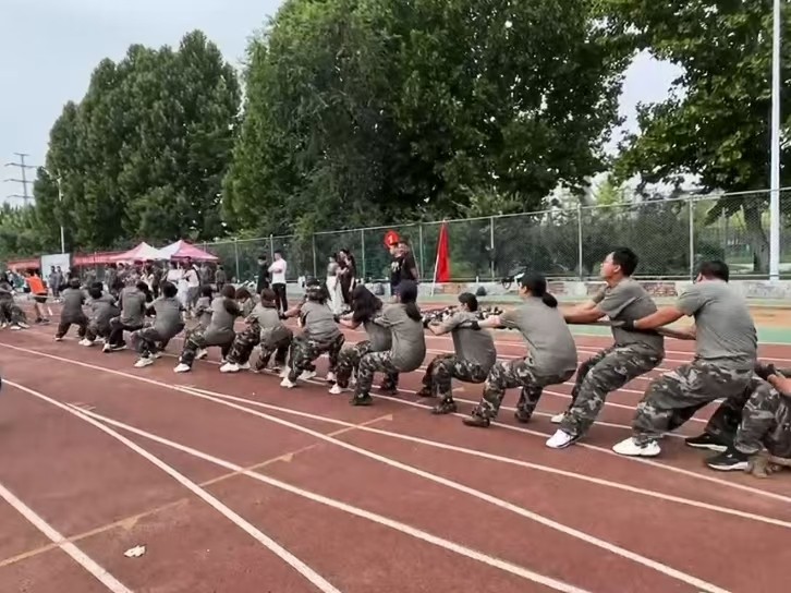 于2024年9月6日下午在西操场组织2024级新生军训拔河比赛。24级辅导员李文静和全体24级新生参加。