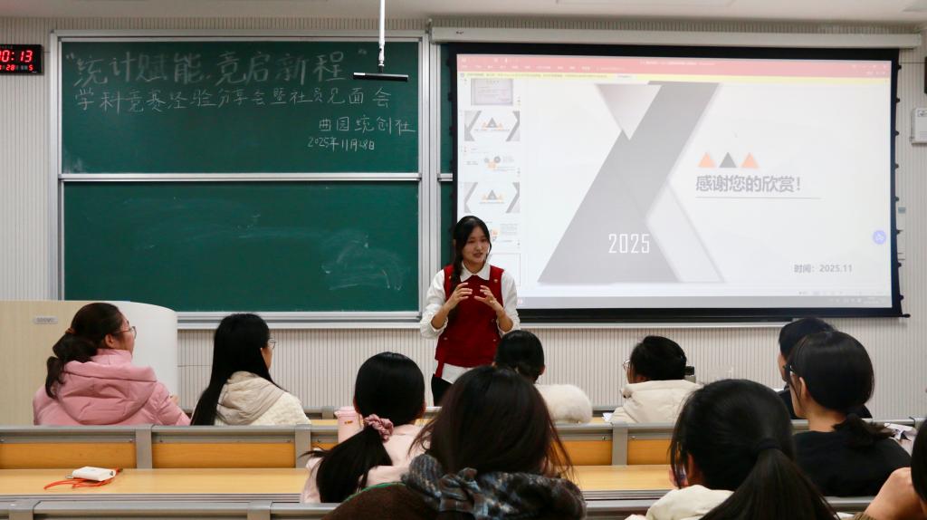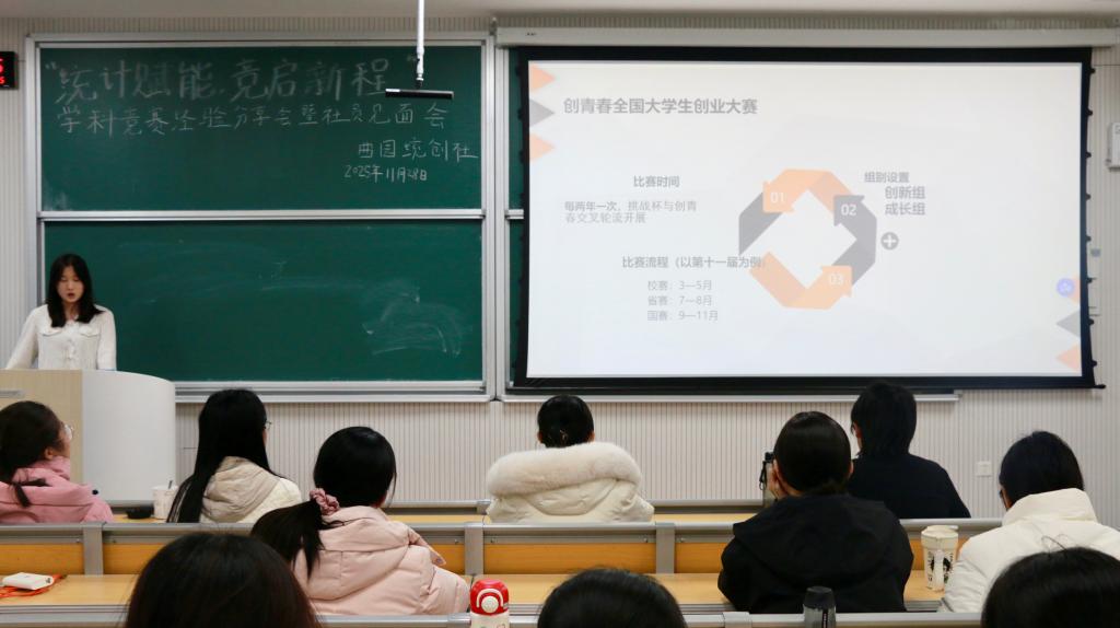 (通讯员:宋炎亭)为助力曲园统创社社员理清竞赛核心逻辑、搭建社团协作平台,11月28日,曲园统创社在格物楼B105举办“统计赋能,竞启新程”经验分享交流会暨曲园统创社社员见面会。