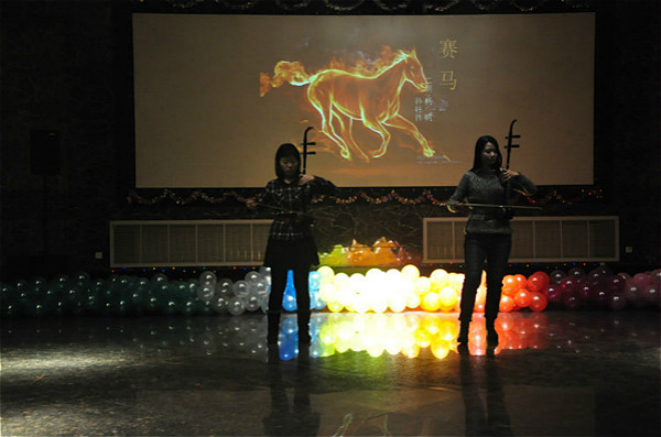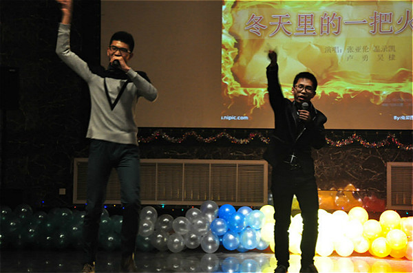 晚会以“新闻联播”的形式拉开了序幕,接着,激情四射的开场舞点燃了大家的激情。“你是电,你是光,你是唯一的神话”,李玲老师和她的助导也欢唱一曲,引得全场尖叫连连。小品《爆笑课堂》、《免费手机》,相声《吹牛》等语言类节目大放异彩,二胡演奏更是以中国传统文化的魅力征服了观众。还有《冬天里的一把火》、《夏天的味道》、《你被写在我的歌声里》、《明天你好》等歌曲的激情开唱,沸腾了整场晚会。亚洲杯直播