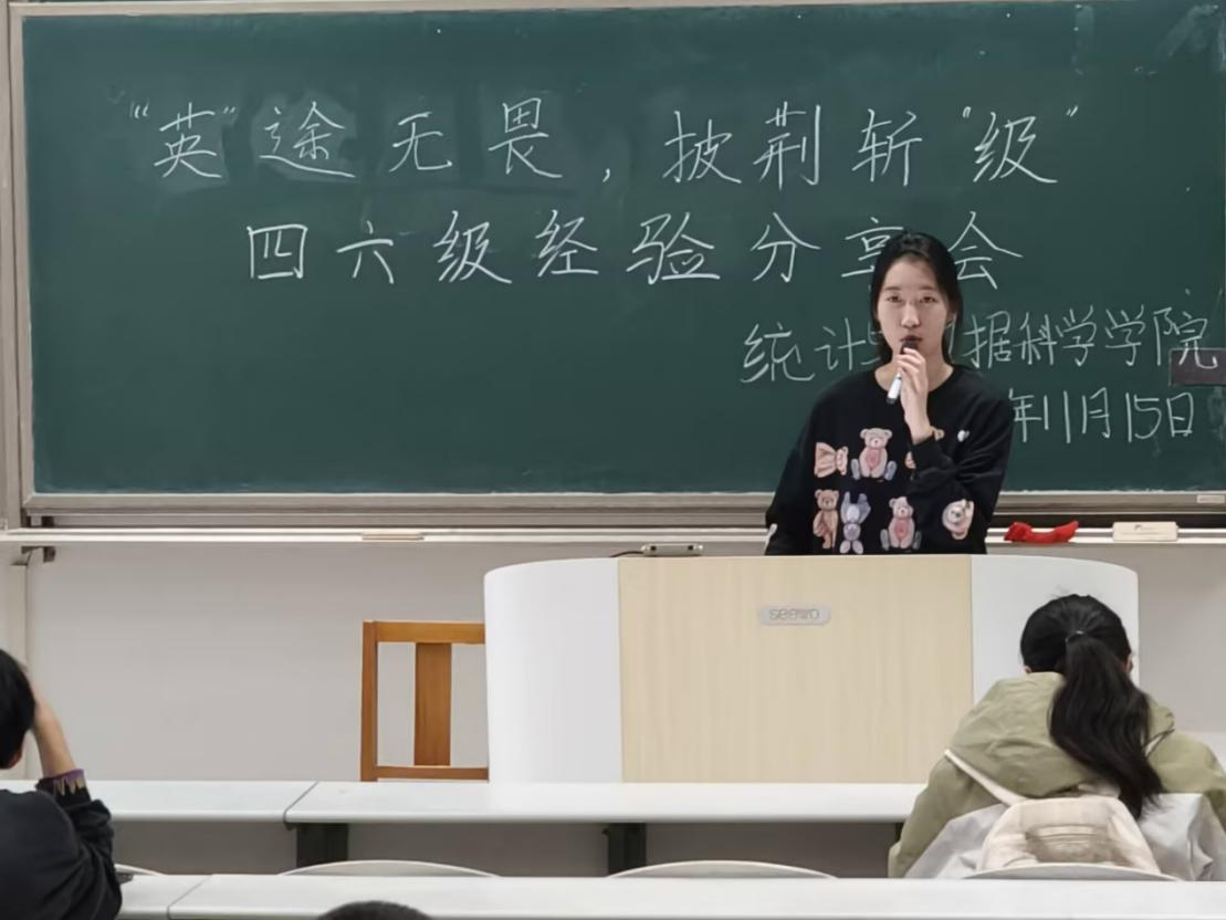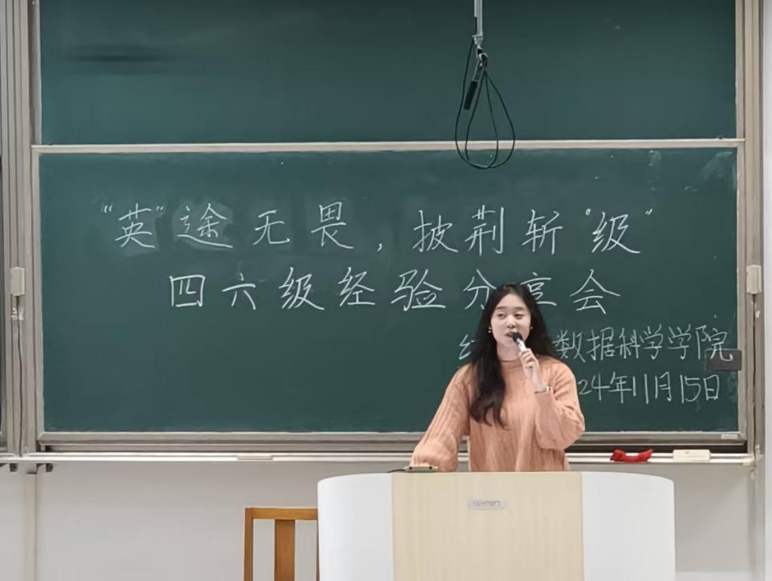 于11月15日在综合楼举行“英”途无畏,披荆斩“级”四六级经验分享会。本次分享会邀请到袁芳梦、孙艺萌、杨煦、孙塬玫、宋炎亭同学进行分享,2024级全体学子参加。