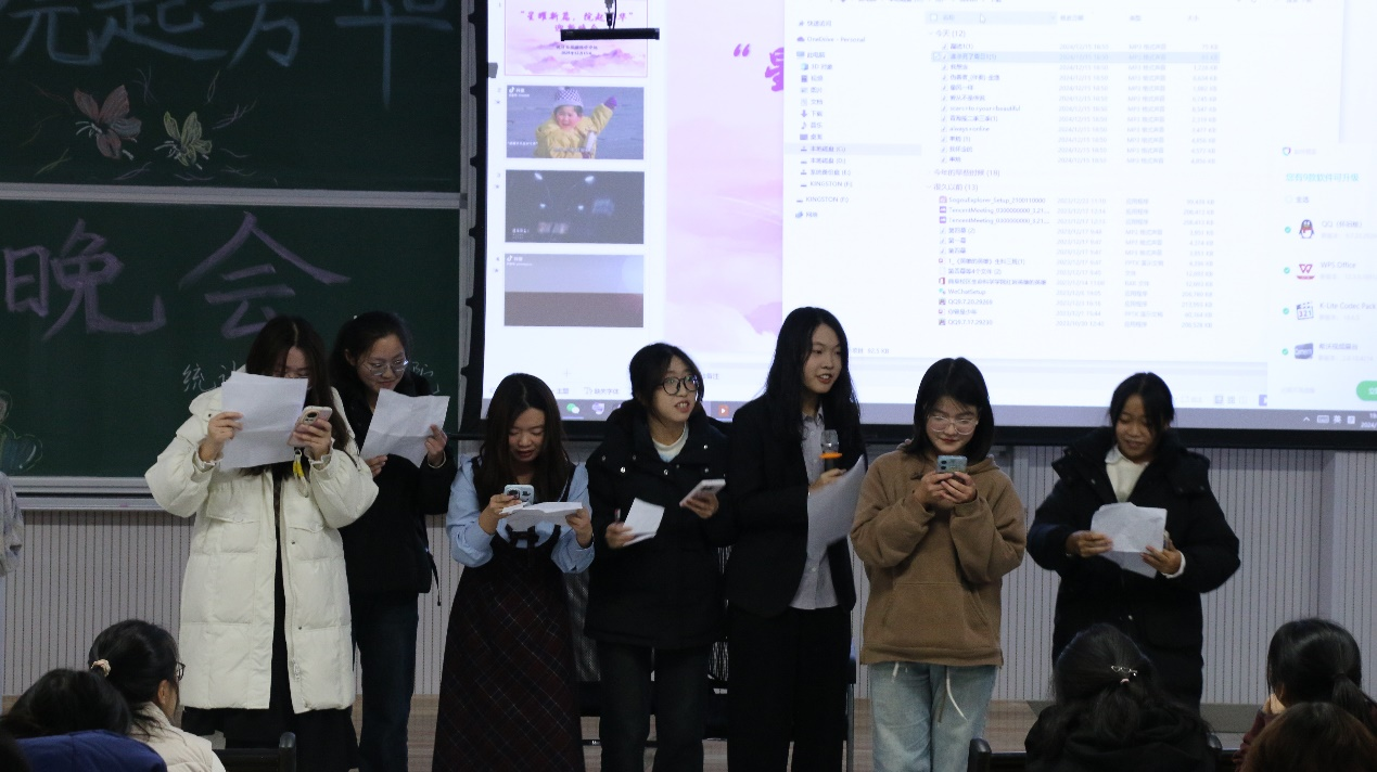 致力于为同学们营造一个温馨和谐的学习生活环境,也将会在今后的时光中继续支持着每一位同学的成长与发展。而后,晚会以深情的朗诵《爱从不是传说》拉开序幕,朗诵者的声音如同温暖的春风,轻轻触动了在场每一位观众的心弦。晚会节目内容丰富多元,涵盖了舞蹈、歌唱、朗诵及小品等多种艺术形式,现场气氛热烈、掌声与欢呼声此起彼伏。晚会中途,主持人们还带领同学们进行了击鼓传花的游戏,现场气氛其乐融融,充满了欢声笑语。游戏不仅增加了晚会的趣味性,还促进了同学们之间的交流与互动。在晚会的尾声,灯光渐暗,随着最后一个节目的结束,本次迎新晚会圆满落幕。