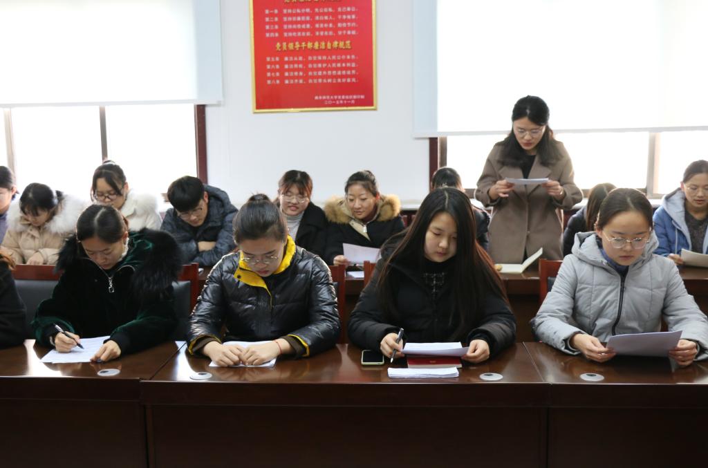 系楼213会议室召开党员纳新大会。会议由本科生党支部组织委员张风姣主持,党支部全体党员,预备党员参加了本次会议。