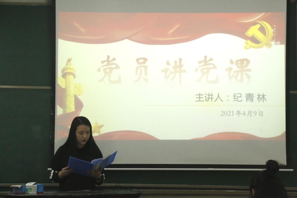 于4月9日下午四点在数科楼103室顺利开展党员讲党课活动。出席本次活动的有党委副书记季中,团委书记李宴美,18级辅导员张风姣以及19、20级辅导员张庆伟。