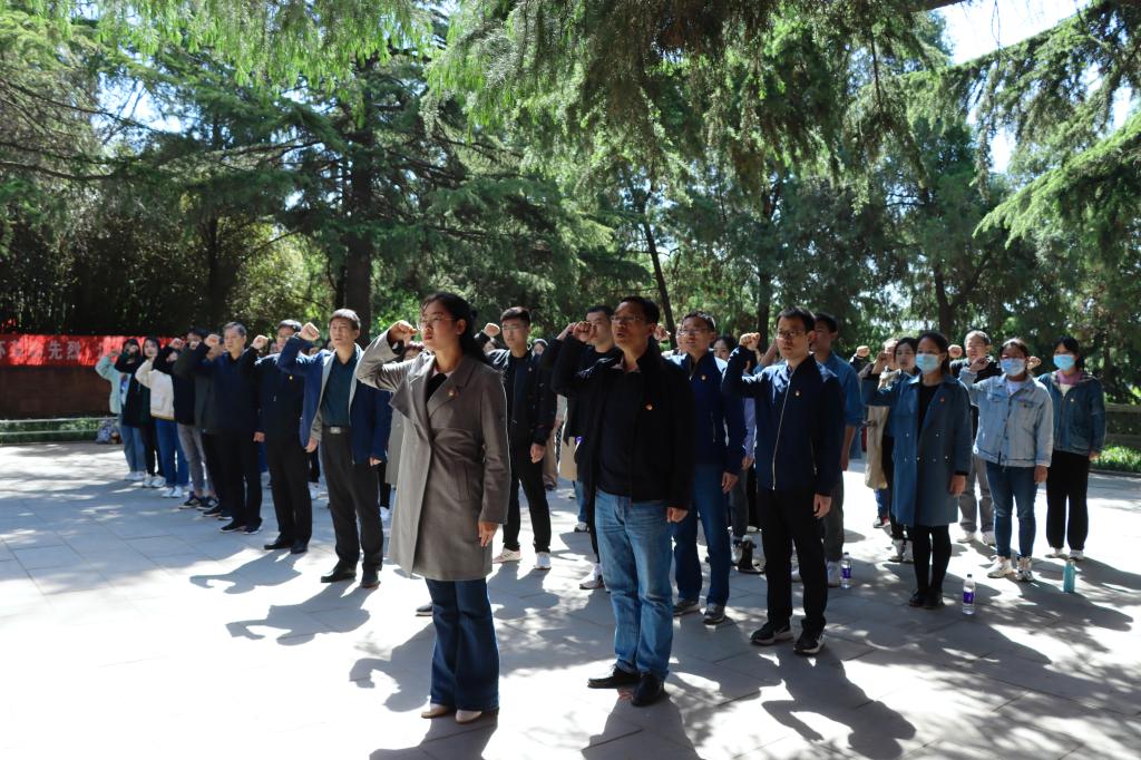 全体师生党员来到羊山革命烈士陵园,怀着庄严肃穆的心情,瞻仰了革命烈士公墓和烈士纪念塔,敬献花篮,鞠躬致敬,肃立默哀。面对鲜红的党旗,全体党员重温了入党誓词,铮铮誓言昭示了党员们不忘初心、牢记使命,为共产主义事业奋斗终生的坚定信念。