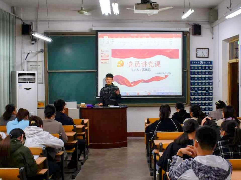 103教室举办“党员讲党课”活动。本次活动特邀隋雨陆,张钰,孟伟龙三位党员同志进行党课宣讲。本科生党支部全体党员及预备党员到会聆听。