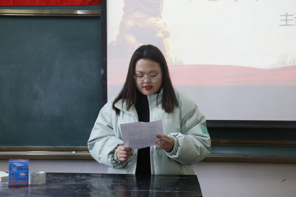 活动开始,张子璇同志讲述了爱党爱军、开拓奋进、艰苦创业和无私奉献的沂蒙精神,呼吁各位同学要学党史、悟思想、办实事、开新局,不断传承红色基因,汲取奋进力量,以昂扬姿态开创新时代现代化建设新局面。随后,毛伯阳同志就党史学习的相关内容呼吁各位中共党员及预备党员应追寻“榜样之光”,点燃“务实引擎”、“本领引擎”和“创新引擎”,以起而行之的姿态为民办实事,投身实践。最后,李述一同志表示作为新时代大学生,各位党员及预备党员更应该发奋学习,认真做好每一件事,完成党组织交代的任务,展现新时代青年该有的形象。