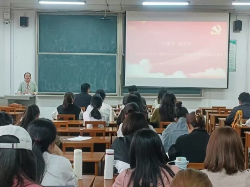 本科生党支部全体党员参加。活动开始,全体党员重温入党誓词。李宴美老师带领全体党员庄严宣读入党誓词,坚定党的信仰。强调要牢牢把握习近平总书记在学习贯彻习近平新时代中国特色社会主义思想主题教育工作会议上的重要讲话精神,“学思想、强党性、重实践、建新功”就要深入开展学习贯彻习近平新时代中国特色社会主义思想主题教育,将其融入实践。从坚定信仰、实践锻炼和责任担当三个角度对全体党员进行了主题教育。李宴美老师指出迈向新征程,全体党员要大力弘扬党的光荣传统和优良作风,坚定党员信仰,补足精神之钙。