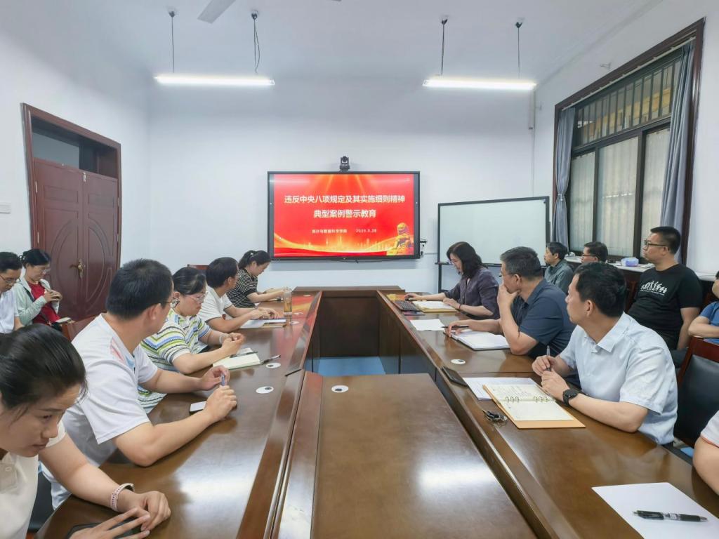 党委书记石倩主持会议,围绕违反中央八项规定精神典型案例开展剖析,推动中央八项规定精神学习教育走深走实,切实强化全体教职工的纪律意识与规矩意识。