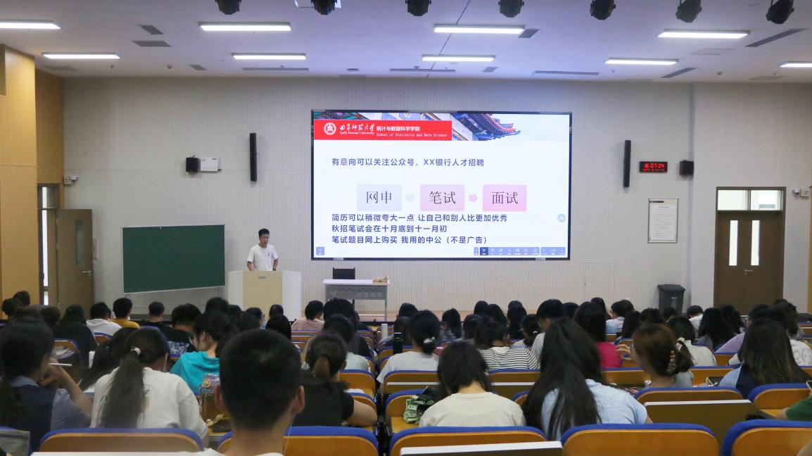 许睿同学进行了就业经历的分享,他为同学们介绍了毕业后道路选择的重要性,主要包括三个方面,即会影响个人职业发展、能够决定未来生活状态、体现个人价值观。他帮助同学们深刻意识到就业选择的重要性,从而激励同学们以更加饱满的热情和认真的态度投入到接下来的学习和日后的就业选择中。