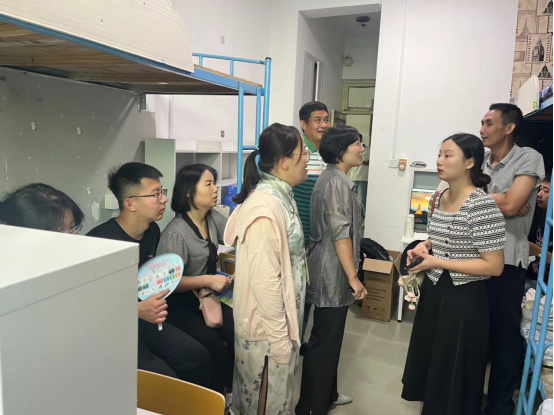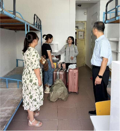 党委书记刘明海、党委副书记季中、团委书记李宴美、新生辅导员李祥敏、李玲走访2023级新生宿舍,看望慰问新同学。