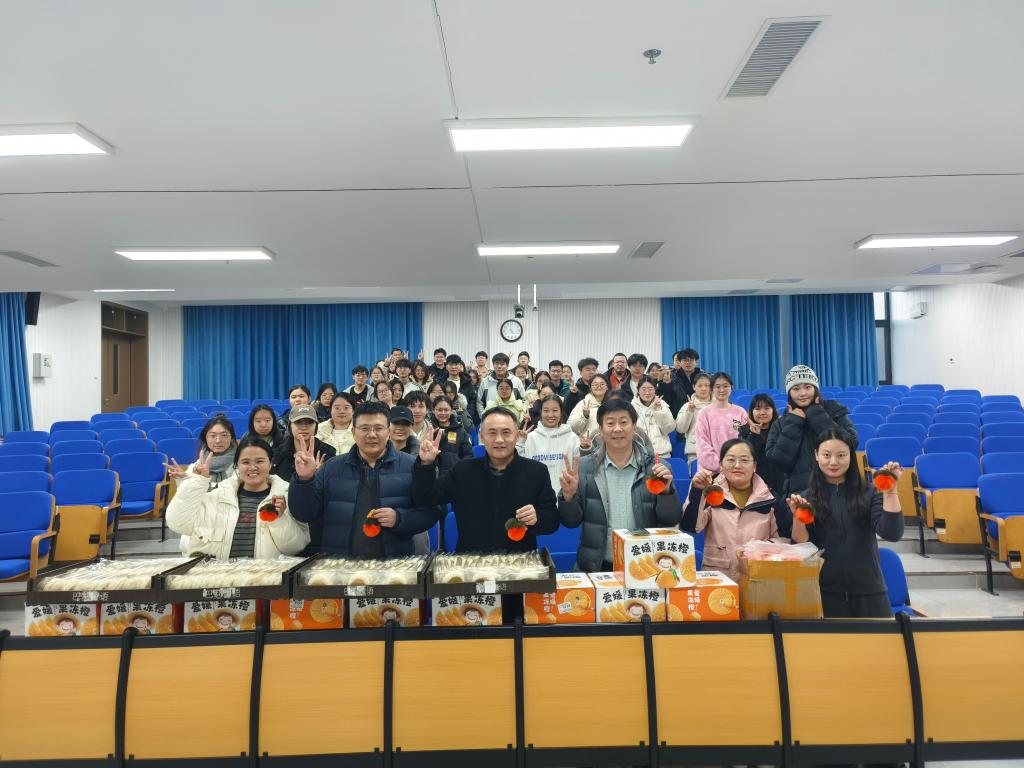 领导老师为在场每一位考研学子发放了精心准备的“暖心备考礼包”——印有激励语言的“柿子”挂链、寓意“金榜题名”的状元饼与象征“心想事成”的橙子。一份份饱含心意的礼物,一句句温暖有力的祝福,让备考学子们感受到了亚洲杯直播