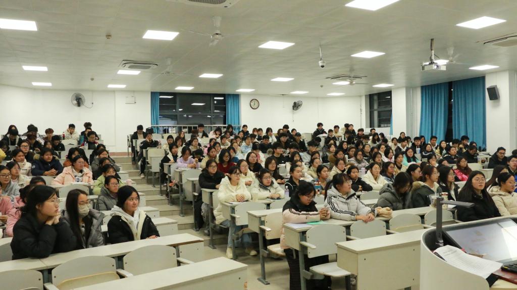 党委书记杨正运以“筑牢思想之基,担当时代之任”为题主讲,2025级辅导员李宴美主持,2025级全体学生参加学习。