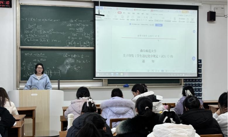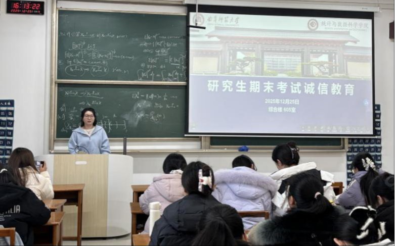 于12月25日在综楼605召开研究生期末教育大会。大会聚焦期末工作部署,强化研究生纪律与责任意识,重点围绕诚信考试、学生安全及管理制度展开,助力学生圆满完成学业、科学规划学习生活。会议由研究生辅导员管阳老师主持,全体2025级研究生参会。